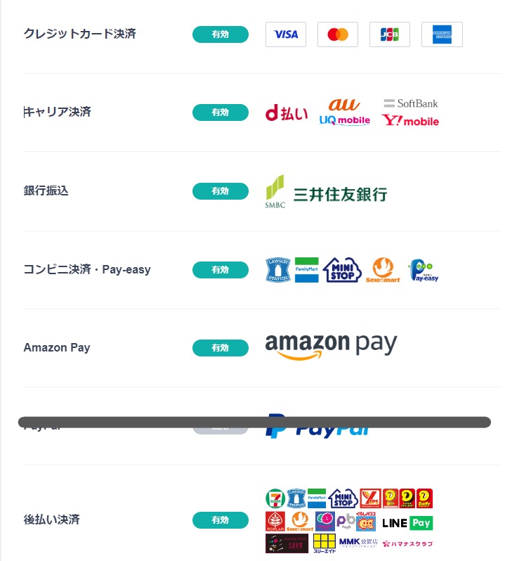 クレジットカード決済、コンビニ決済、銀行振込決済、キャリア決済、Amazon Pay決済による決済がご利用いただけます。